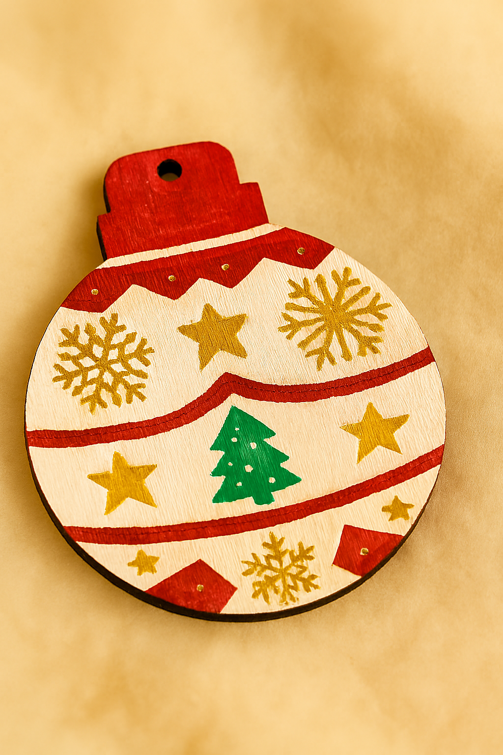 Шар из многослойной фанеры — это изящное украшение в эко‑стиле, которое добавит зимнего волшебства вашей ёлке или интерьеру. Лёгкая, резная, с естественной текстурой дерева, она идеально подходит для скандинавского или минималистичного оформления.