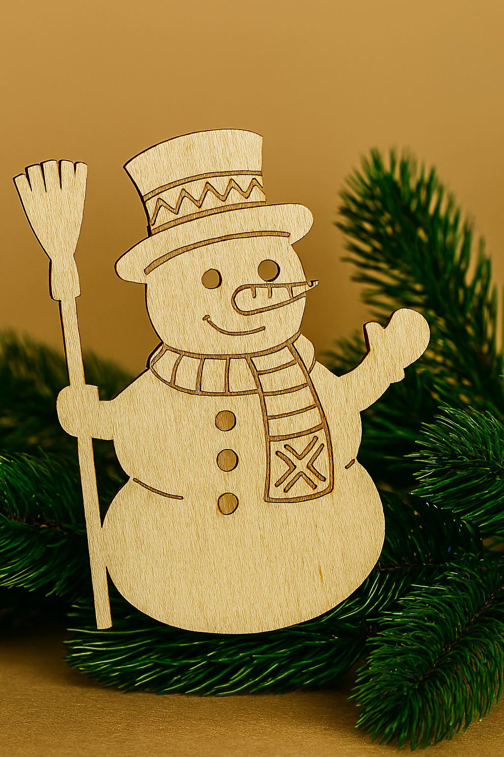 Снеговик из многослойной фанеры — это изящное украшение в эко‑стиле, которое добавит зимнего волшебства вашей ёлке или интерьеру. Лёгкая, резная, с естественной текстурой дерева, она идеально подходит для скандинавского или минималистичного оформления.