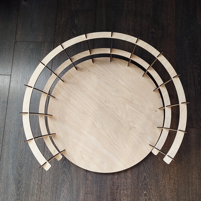 Стильная круглая лежанка из натуральной фанеры для кошек и мелких собак. Современный дизайн, экологичные материалы и уютная форма — идеальное дополнение к интерьеру.